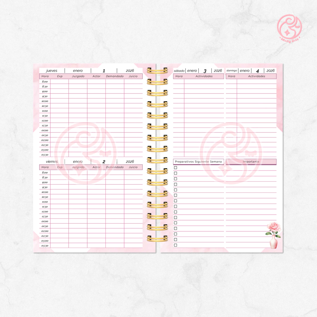 Agenda Semanal con fechas Enero a Diciembre 2026