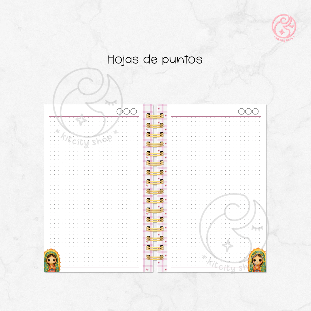 Te presentamos nuestra hermosa libreta de Virgencita, ideal para quienes buscan un rincón de inspiración y espiritualidad en su día a día. Con un encantador tamaño media carta (15 x 22.5 cm), es perfecta para acompañarte en todas tus aventuras.